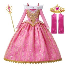 Ragazze che dormono bellezza Aurora Princess Dress maniche lunghe con spalle scoperte abito in pizzo per bambini Fancy Party outfit 2-10 anni